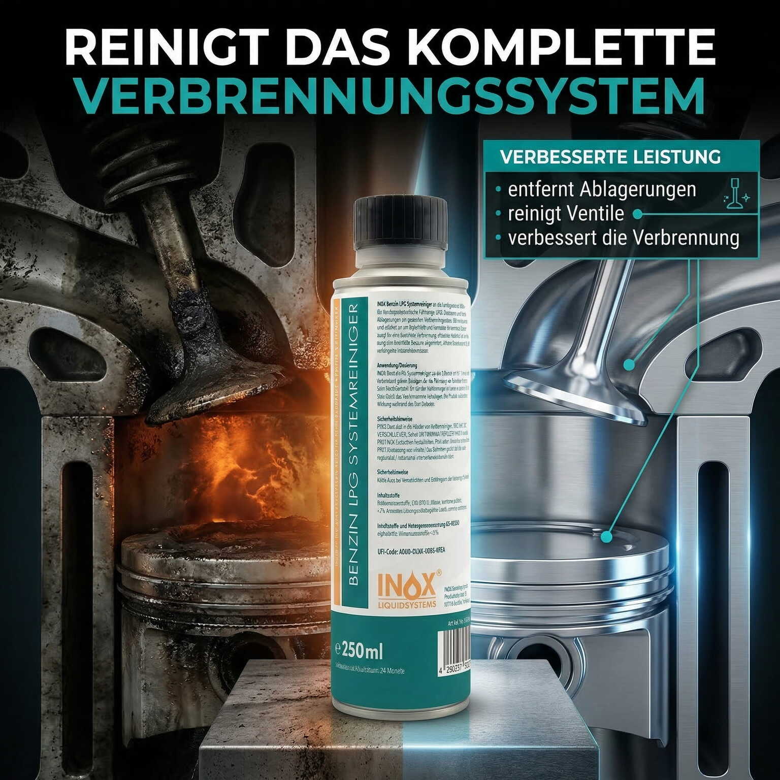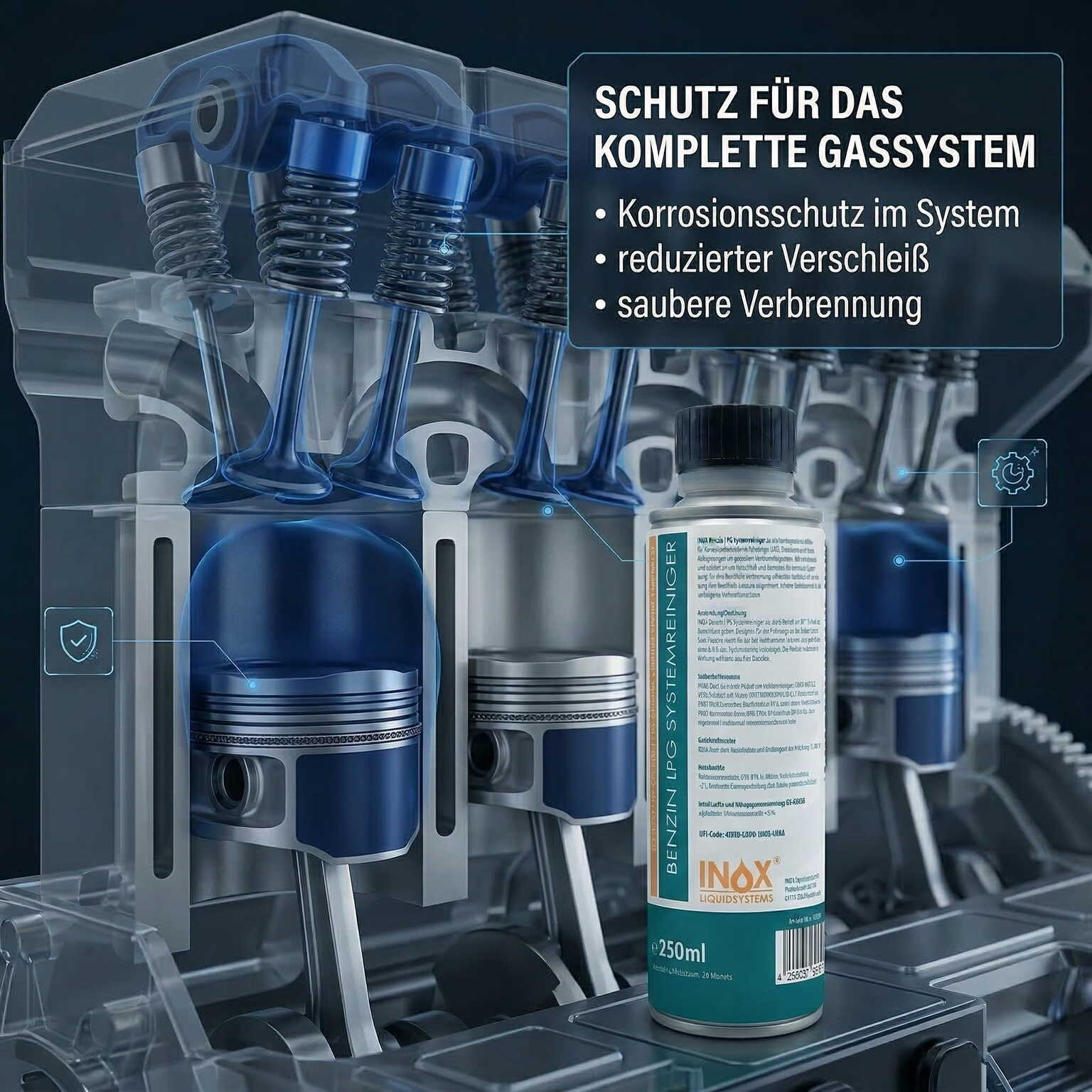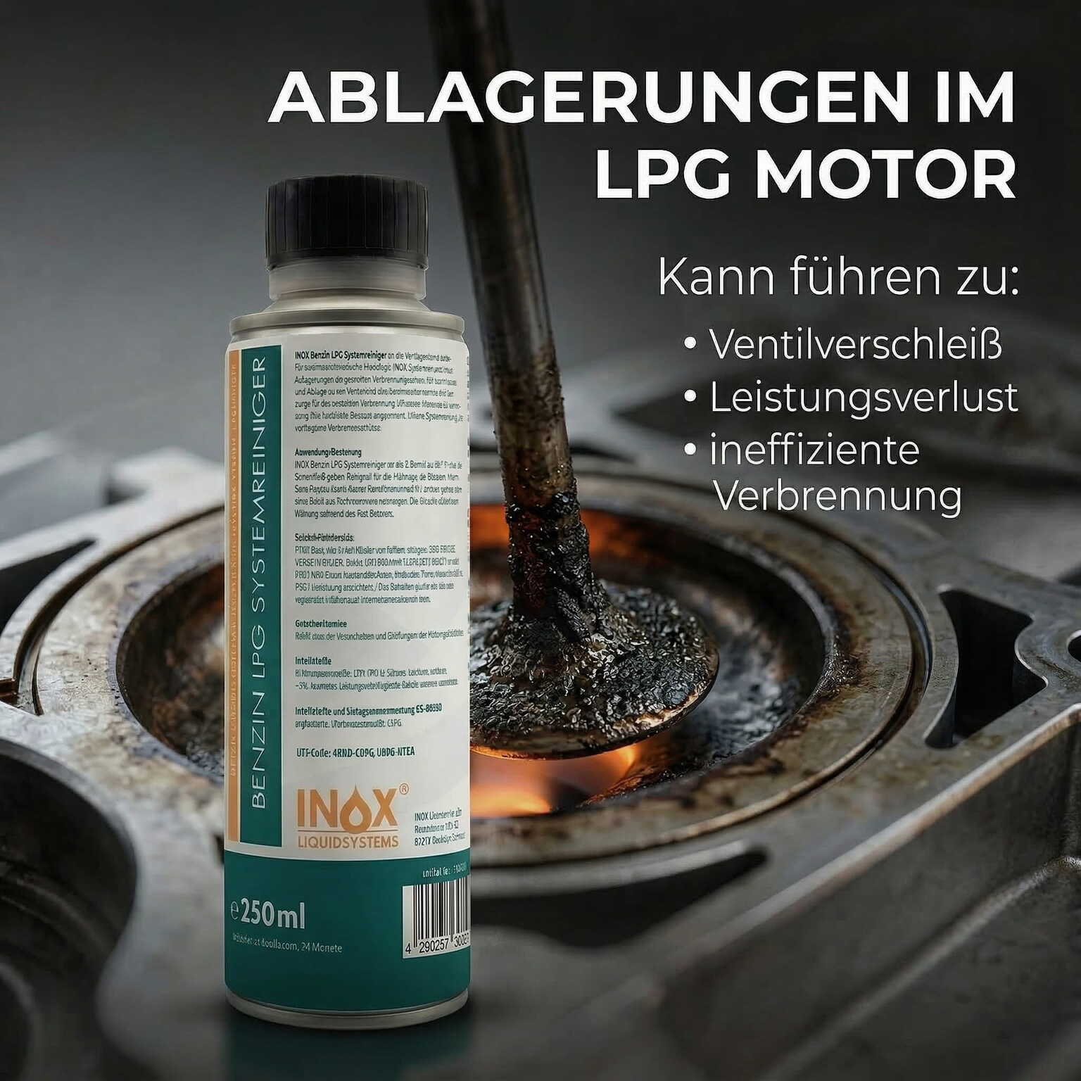 Der INOX® LPG Benzinsystemreiniger Additiv ist speziell für Autos mit Gasanlage entwickelt. Schützt effektiv vor Korrosion, minimiert Verschleiß im gesamten System & bietet optimalen Schutz gegen Ventileinschlag. Verhindert die Bildung von Verbrennungsrückständen & reduziert altersbedingte Oxidation des Flüssiggases – für eine lange Lebensdauer Ihres Gassystems!